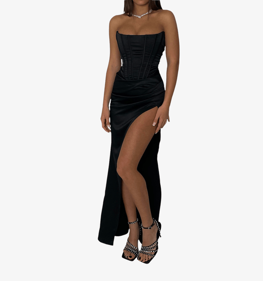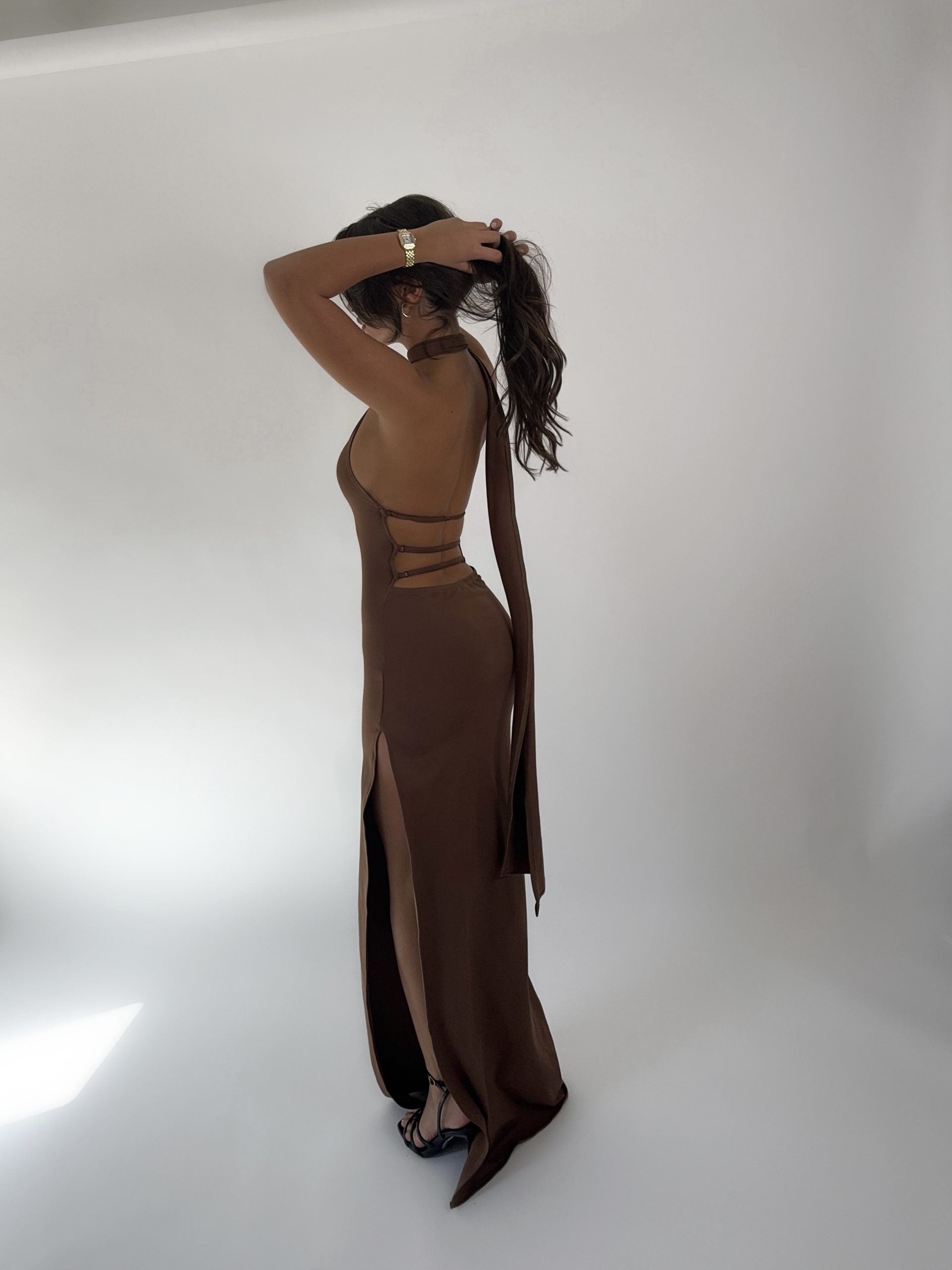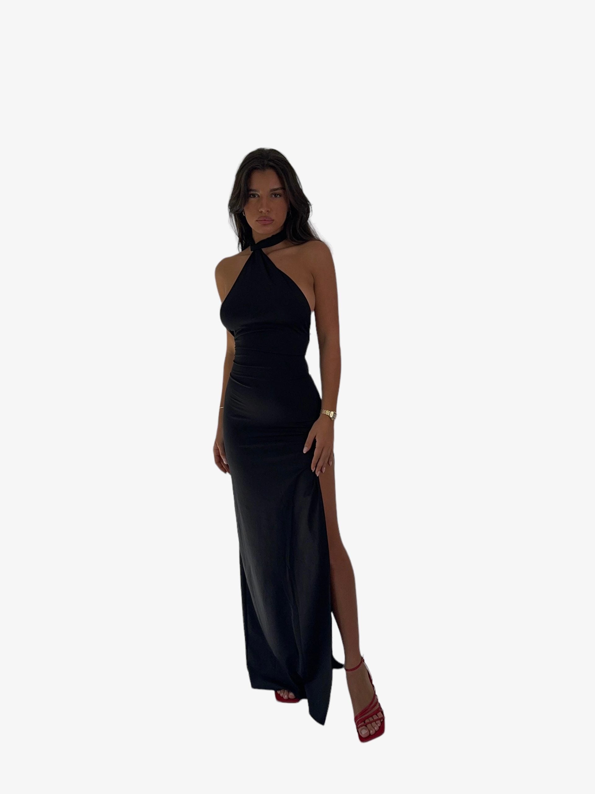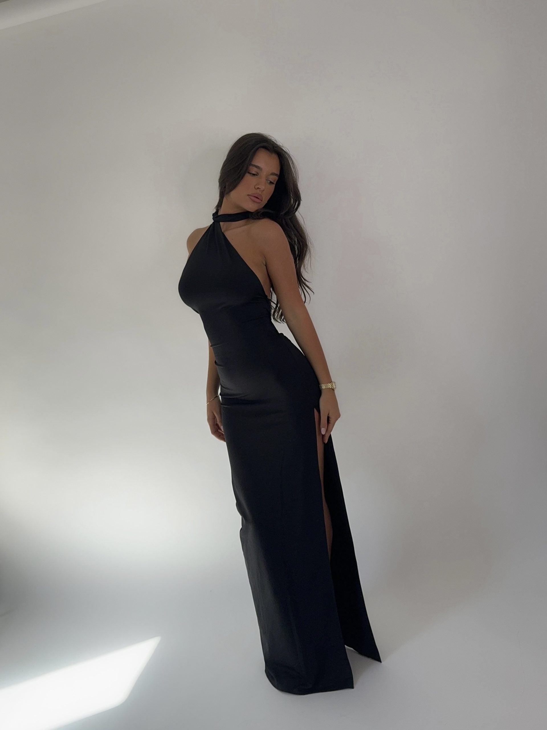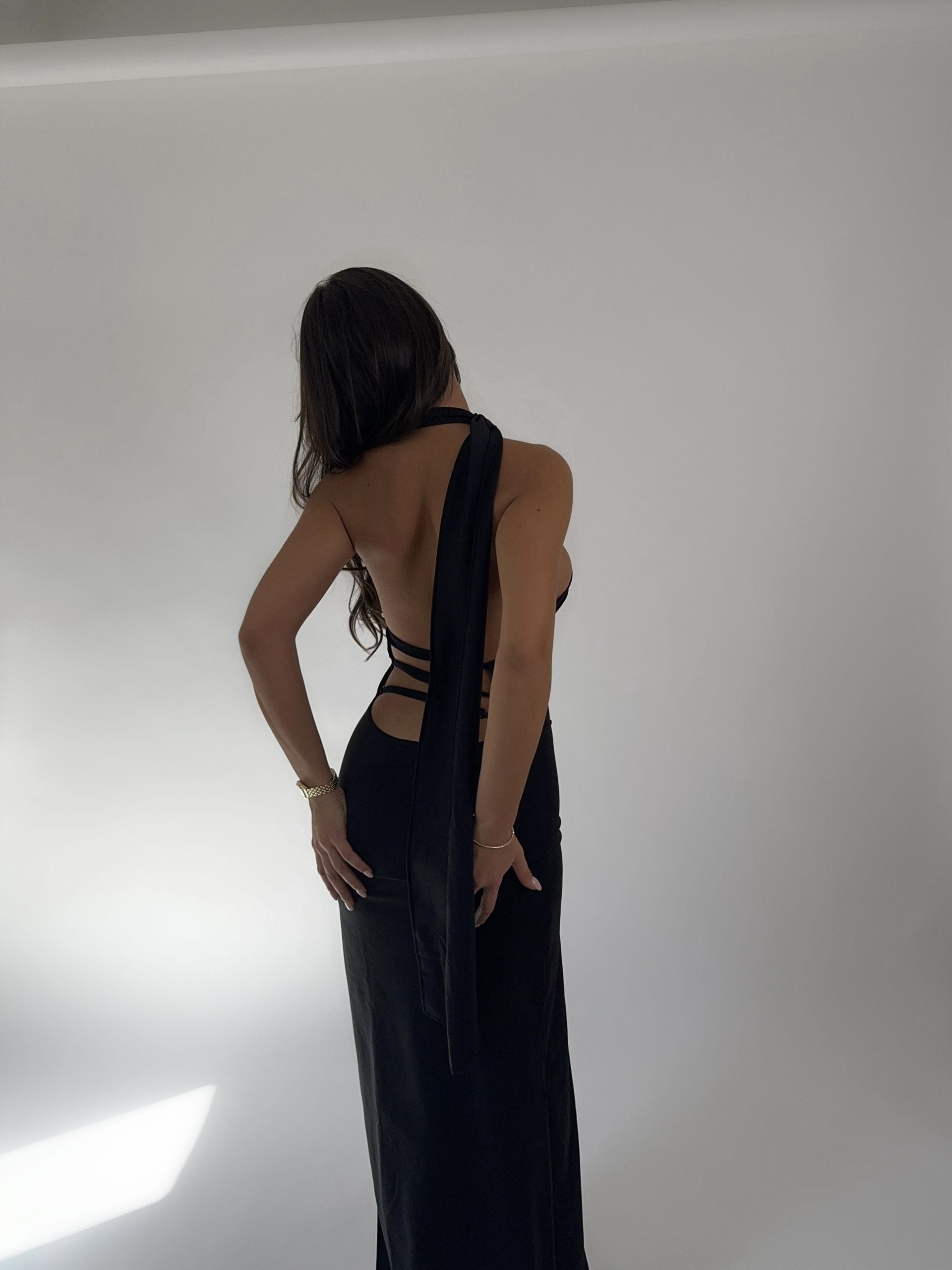 After je haljina golih leđa koja je izrađena od likre. Ima podesive bretela koje kada zategnete, vaš struk dolazi do izražaja. Šlic sa strane daje notu misterioznosti i odvažnosti. Traku možete prebaciti oko vrata i time istaći svoj vrat i ramena. Vanvremenska haljina koja će biti omiljeni komad u tvom garderoberu.